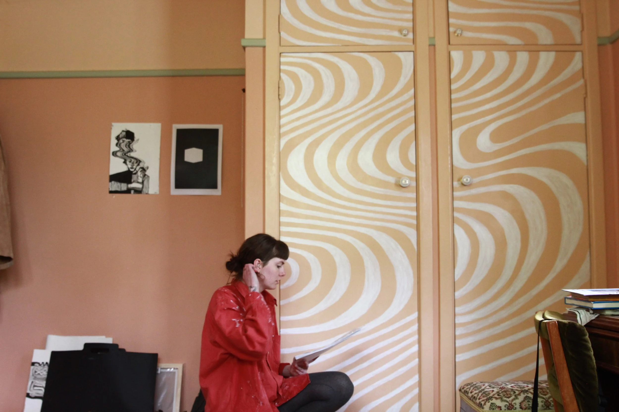 In this series, participants were asked to paint self portraits onto a large pane of glass. They were then photographed through the glass, throughout their process. Participants did not generally have experience in painting and were allowed to interpret 'self portrait' however they wished.